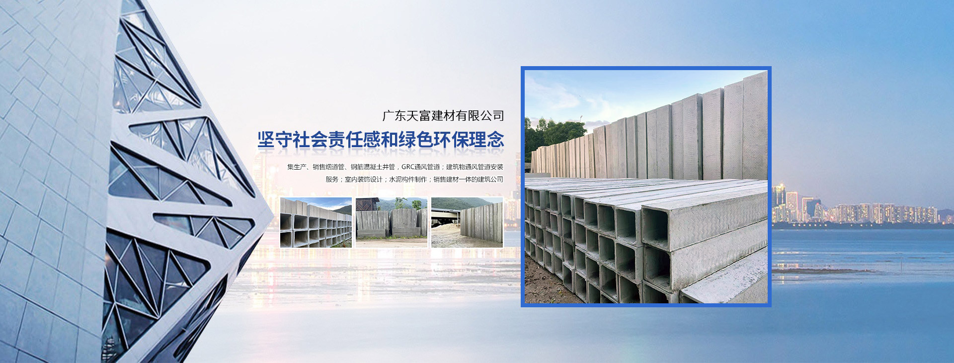 廣東天富建材有限公司是集生產(chǎn)、銷售煙道管、鋼筋混凝土井管、GRC通風(fēng)管道,建筑物通風(fēng)管道安裝服務(wù)、室內(nèi)裝飾設(shè)計(jì)、水泥構(gòu)件制作于一體的建筑公司。公司擁有一支高素質(zhì)、高水平、年輕的團(tuán)隊(duì),秉承“品質(zhì)·服務(wù)”的經(jīng)營(yíng)理念,為客戶提供科學(xué)經(jīng)濟(jì)的方案及技術(shù)指導(dǎo)。